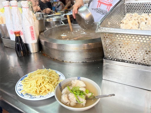 そして、「花枝羹大麵炒」、イカのスープとやきそばという意味で、他にも何軒か同じ看板を出しているお店を見たから、この二つは基隆ではセットだ食べるのが定番なんだろうか?